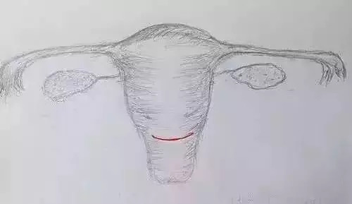 上圖:子宮上同樣有這樣一條瘢痕,不能因為看不到而忽略它的存在