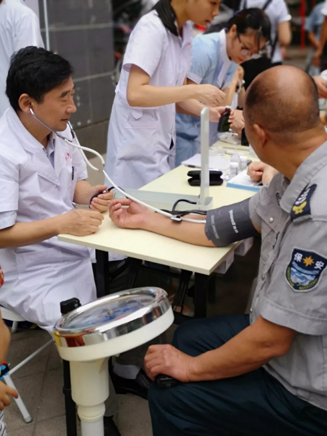 上午微風(fēng)陣陣,天氣甚好,待義診團(tuán)隊(duì)到達(dá)時(shí),早已有提前知曉活動(dòng)的叔叔阿姨們等侯在此,醫(yī)護(hù)人員們將醫(yī)護(hù)物品準(zhǔn)備到位后,隨后前來咨詢問診的市民便絡(luò)繹不絕。內(nèi)科專家吳主任、胡主任等醫(yī)師現(xiàn)場(chǎng)為前來就診的居民進(jìn)行了認(rèn)真細(xì)致的檢查,祝院長(zhǎng)也首當(dāng)其沖為患者測(cè)量血壓,耐心詢問他們的日常習(xí)慣及身體狀況,并為其答疑解難。